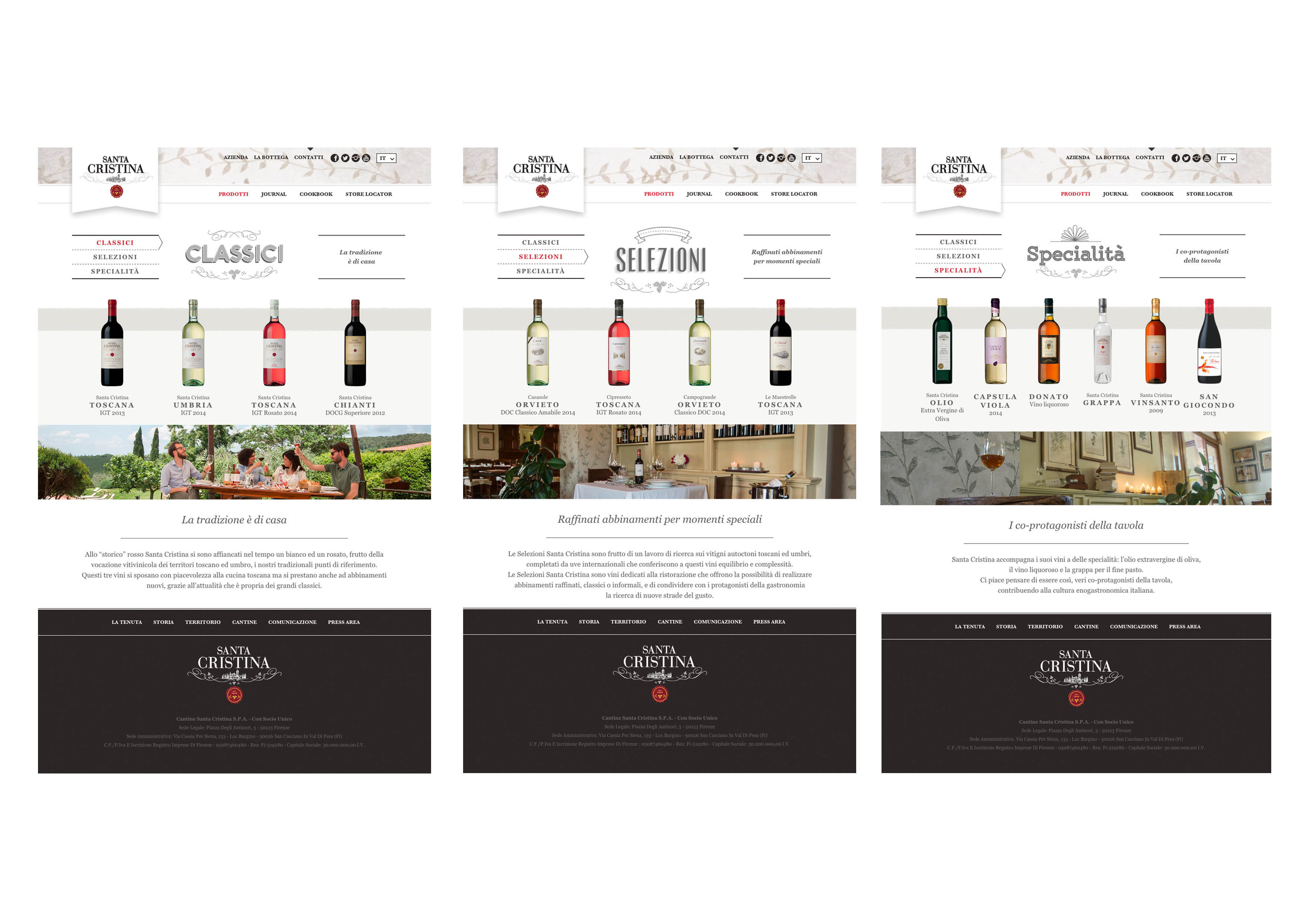 A tre anni dalla creazione del primo sito dedicato alla famiglia di vini Santa Cristina, ci è stato chiesto di studiare una nuova release che alzasse il livello della percezione di marca. Il lavoro è partito dal rinnovo dell’immagine seguendo i nuovi valori del brand: eleganza informale, toscanità, contemporary living, cool vision della Toscana così com'è percepita dall’estero, shabby chic.